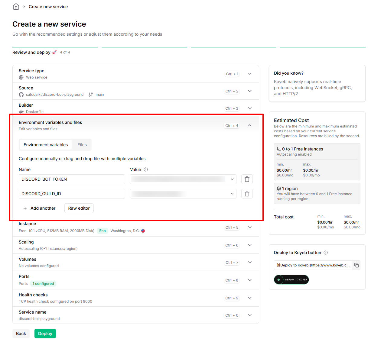 koyeb側でwebアプリを作成します。