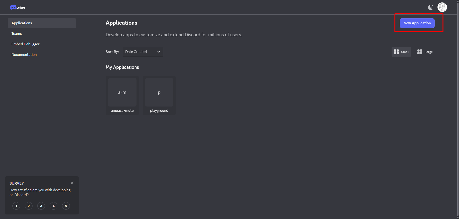 「New Application」をクリックして新しくアプリケーションを作成します。