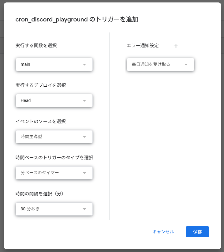 実装したら、トリガーを追加します。