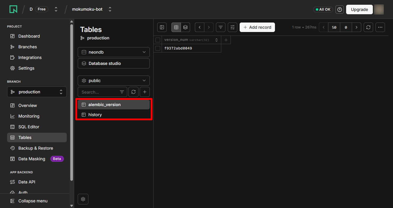 Neonに関してはログインしてプロジェクト作ったら即使えたので、alembicの解説の方が長くなってしまいました。