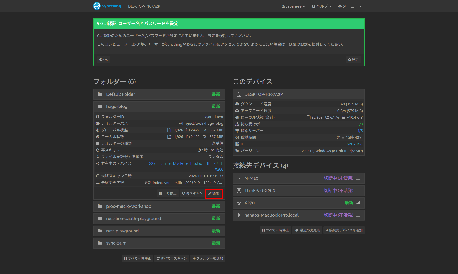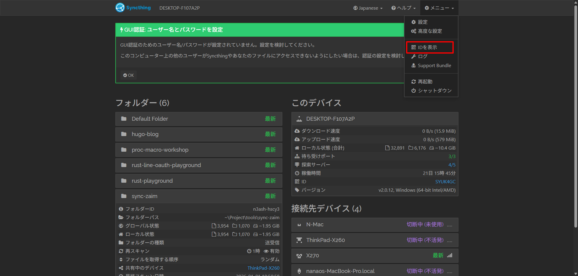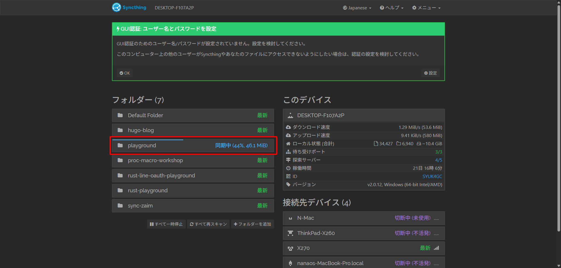 フォルダの共有作業が圧倒的に楽になるSyncthing、導入してからソースコード共有が非常に楽になりました。