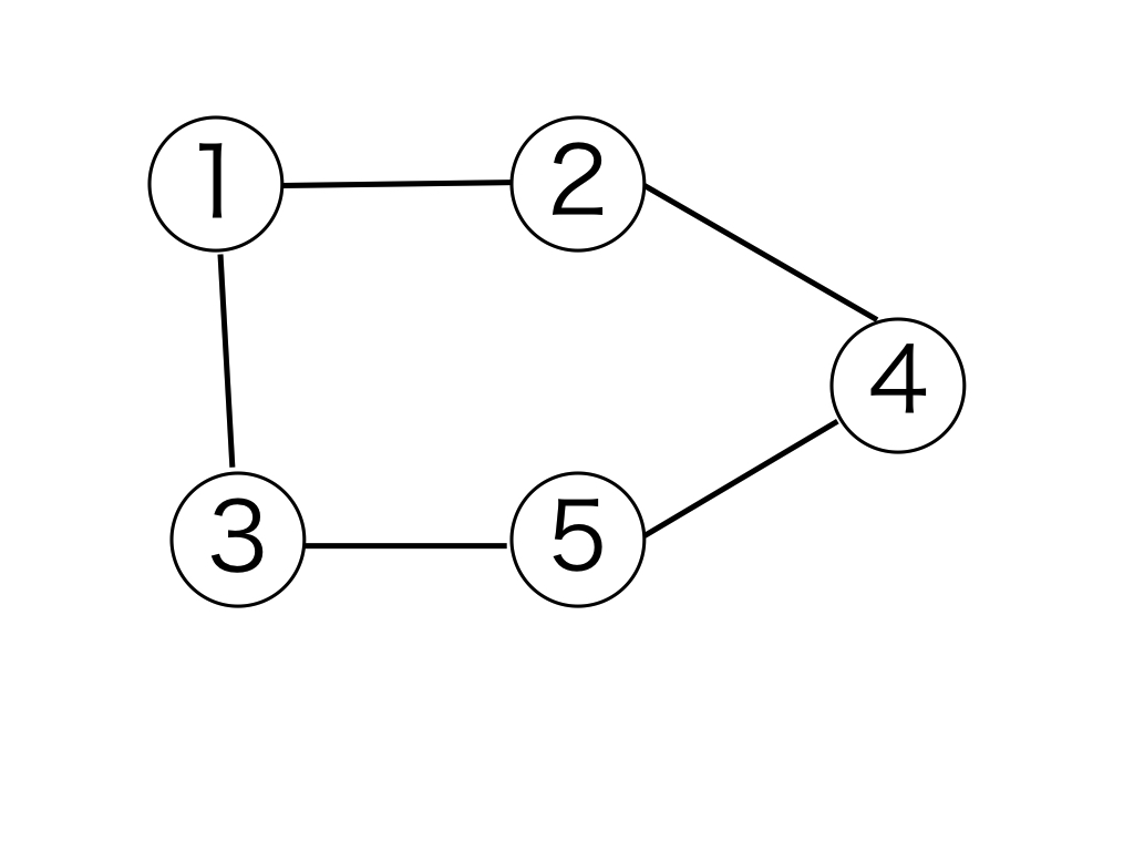 図1(五角形のような形)を「隣接リスト」にすると、こんな感じのメモ帳セットになります。 ※コンピュータの世界なので、番号を「-1」して 0番から数えるルールで書きますね。