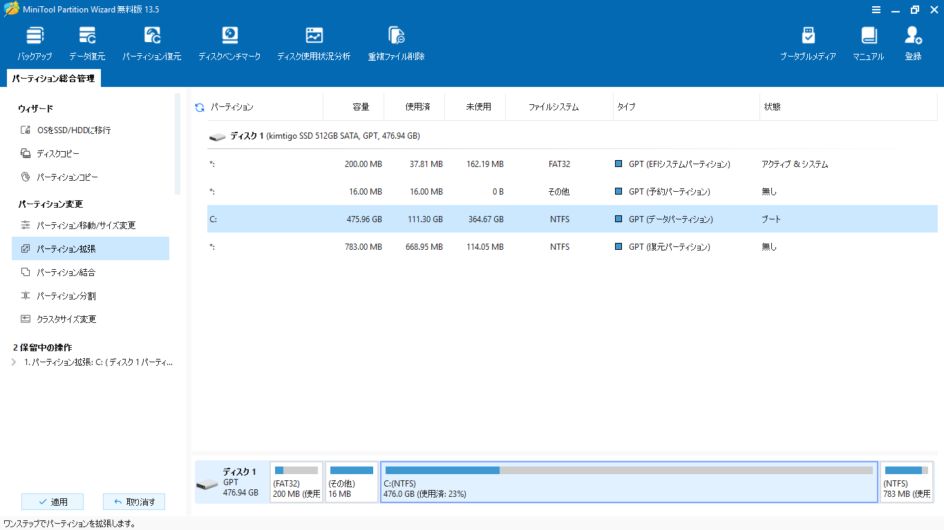 今回はMiniToolのPartitionWizardというソフトを使います。