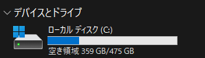 大体さきほどのディスクの管理の画面で見た情報と変わらないですね。
