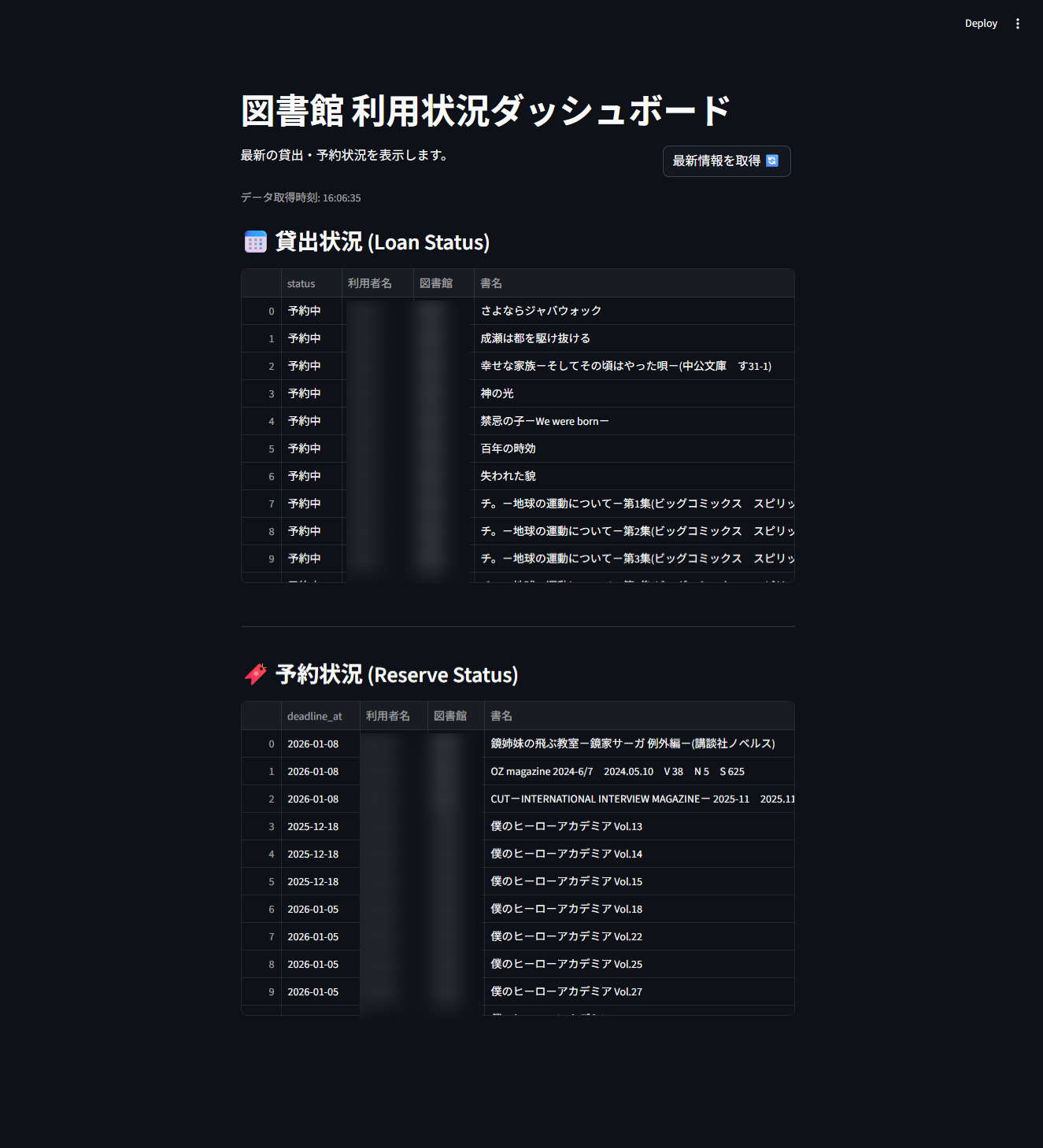 st.write("最新の貸出・予約状況を表示します。")
